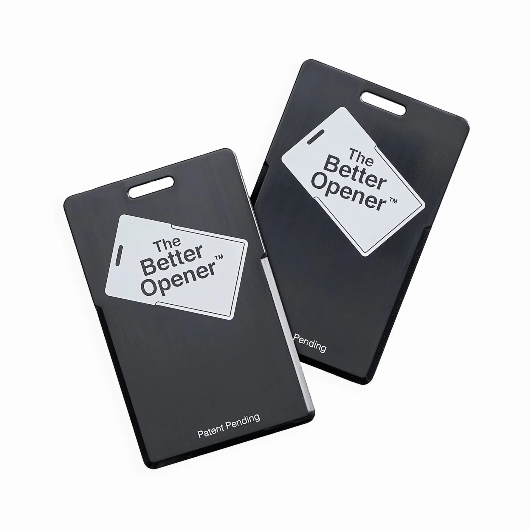 Simply attach The Better Opener™ to your badge, grasp the non-beveled edge with your hand and slide the device along the desired surface. Cut away from yourself and keep your other hand clear of the beveled edge to avoid injury. When finished, release the device and it will return to your badge. When opening vacuum-packed positioning devices, choose an area clear of the sealed product and apply the minimum amount of pressure to break the seal. Keep your other hand clear of the beveled edge to avoid injury.